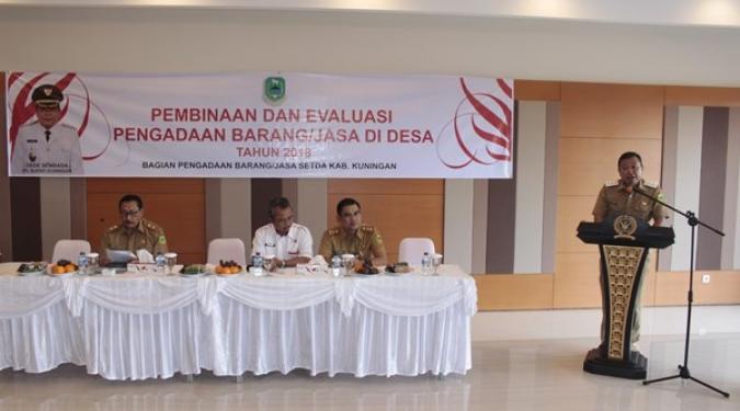 Sebanyak 100 orang Kepala Desa dan Tim Pengelola Kegiatan ( TPK ) Desa diberikan pemahaman dalam penetapan rencana pelaksanaan pengadaan barang/jasa dalam sebuah acara pembinaan dan evaluasi pengadaan barang/jasa di desa oleh Bagian Pengadaan Barang dan Jasa Kabupaten Kunigan, di Wisma Pepabri, Selasa (8/5/2018).